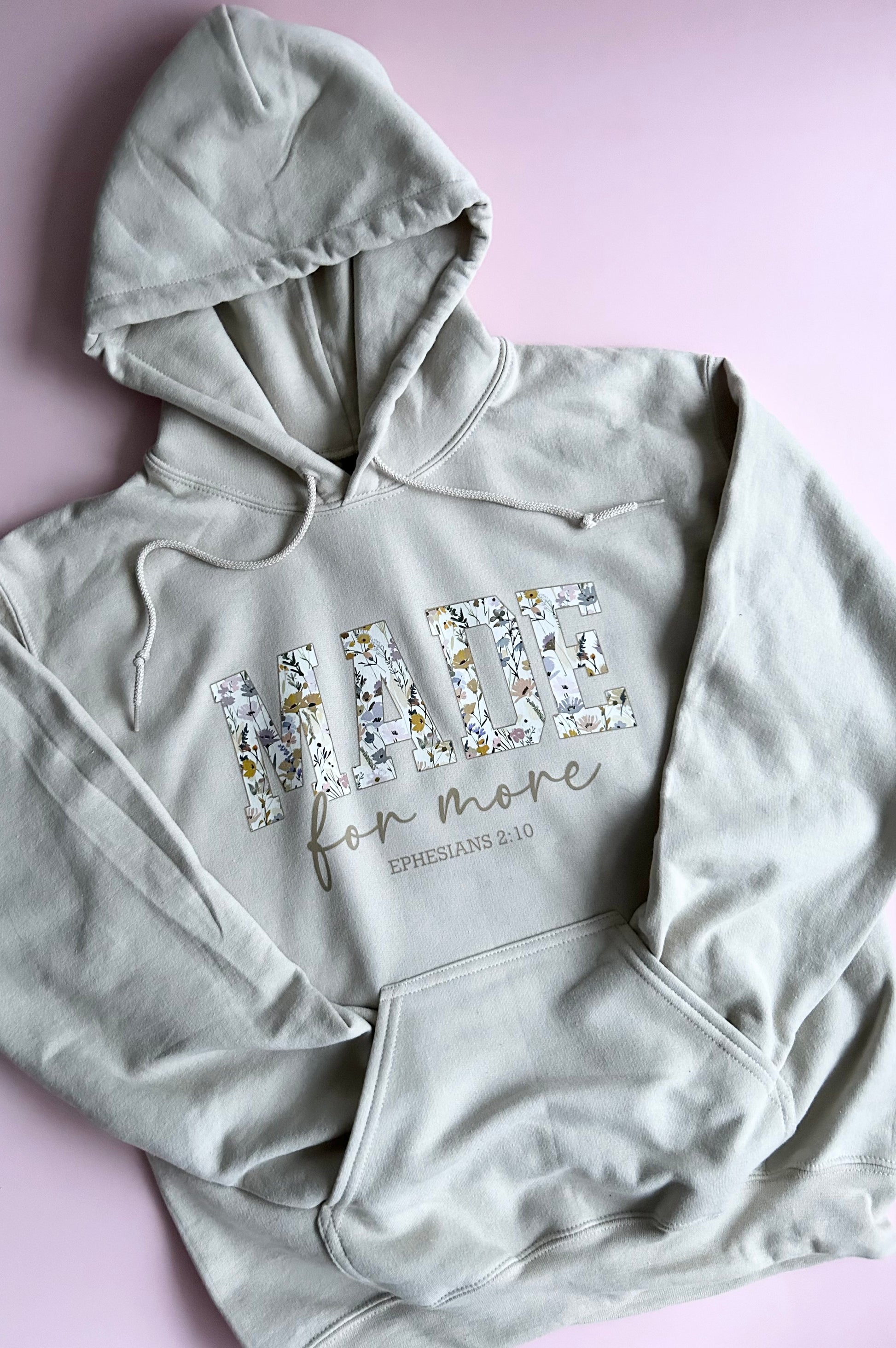 Our "Made for More" hoodie is more than just a cozy layer; it’s a statement of identity. Designed for those who seek beauty in the everyday, this piece combines a powerful message with a soft, nature-inspired aesthetic.