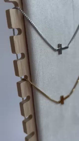 Sideways Cross Necklace | Premium Stainless Steel | Silver or Gold